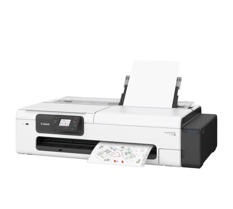 imagePROGRAF TC-21M, profesjonalna drukarka wielkoformatowa, oferuje imponujące możliwości drukowania w różnych zastosowaniach. Elegancka a także kompaktowa konstrukcja sprawia, że urządzenie doskonale pasuje do środowisk biurowych i małych pracowni.Przede wszystkim Wykorzystując technologię druku atramentowego, ploter TC-20 zapewnia precyzyjne, tym samym bardziej żywe odwzorowanie kolorów. Dodatkowo, 5-kolorowy system atramentów pigmentowych, w tym cyjan, magenta, żółty, czarny i czarny matowy, zapewnia doskonałą gęstość czerni i ostrą jakość tekstu.